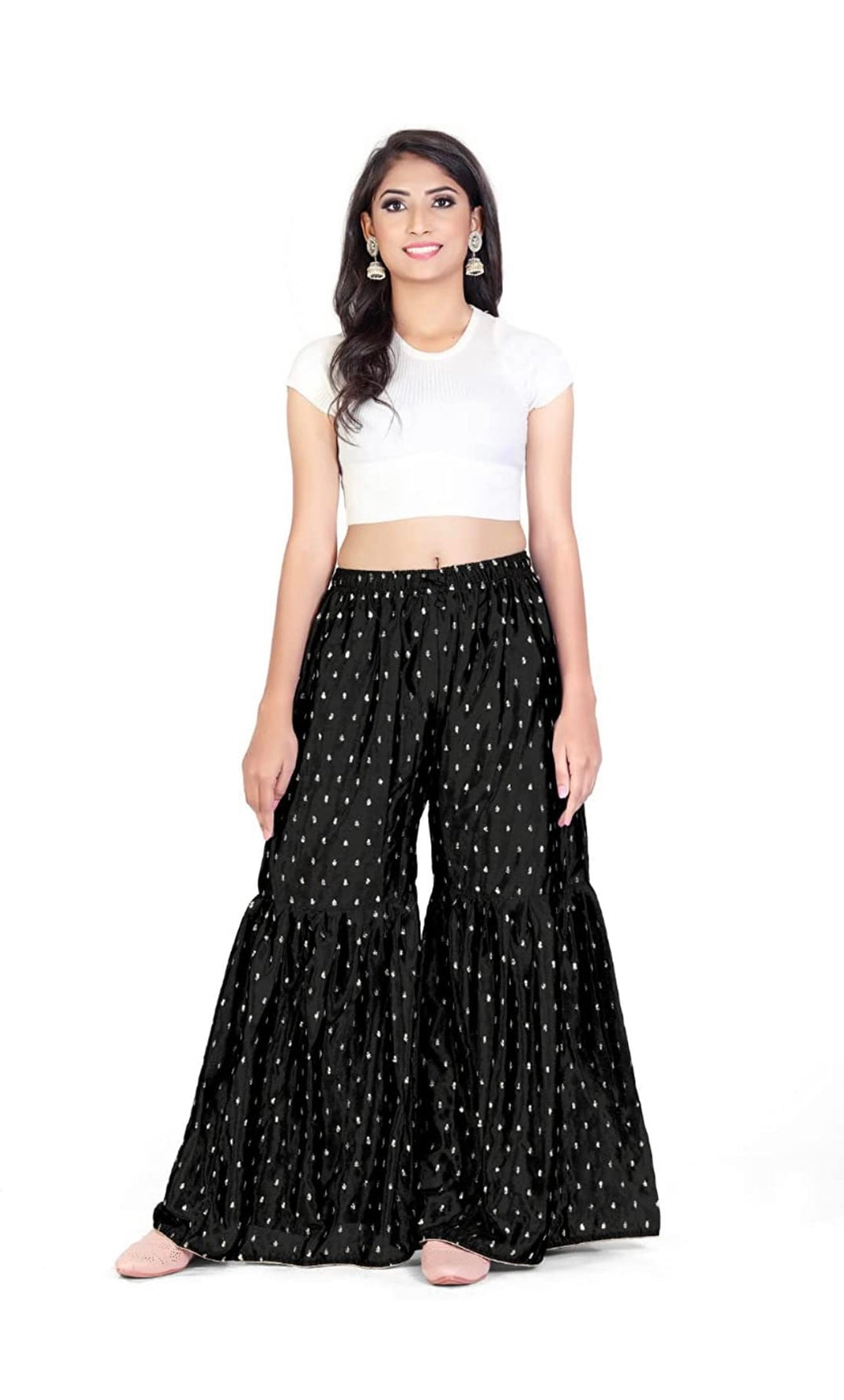Beautiful sequin work flared Sharara Pants. Match with your Kurtis and brighten your attire.