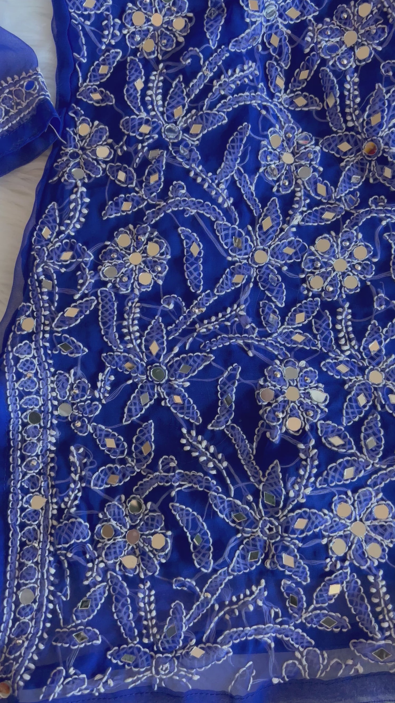Glam up with this beautiful Lucknowi Short mirror kurtis. Goes well with any trouser or jeans! Best for Office wear or party wear.