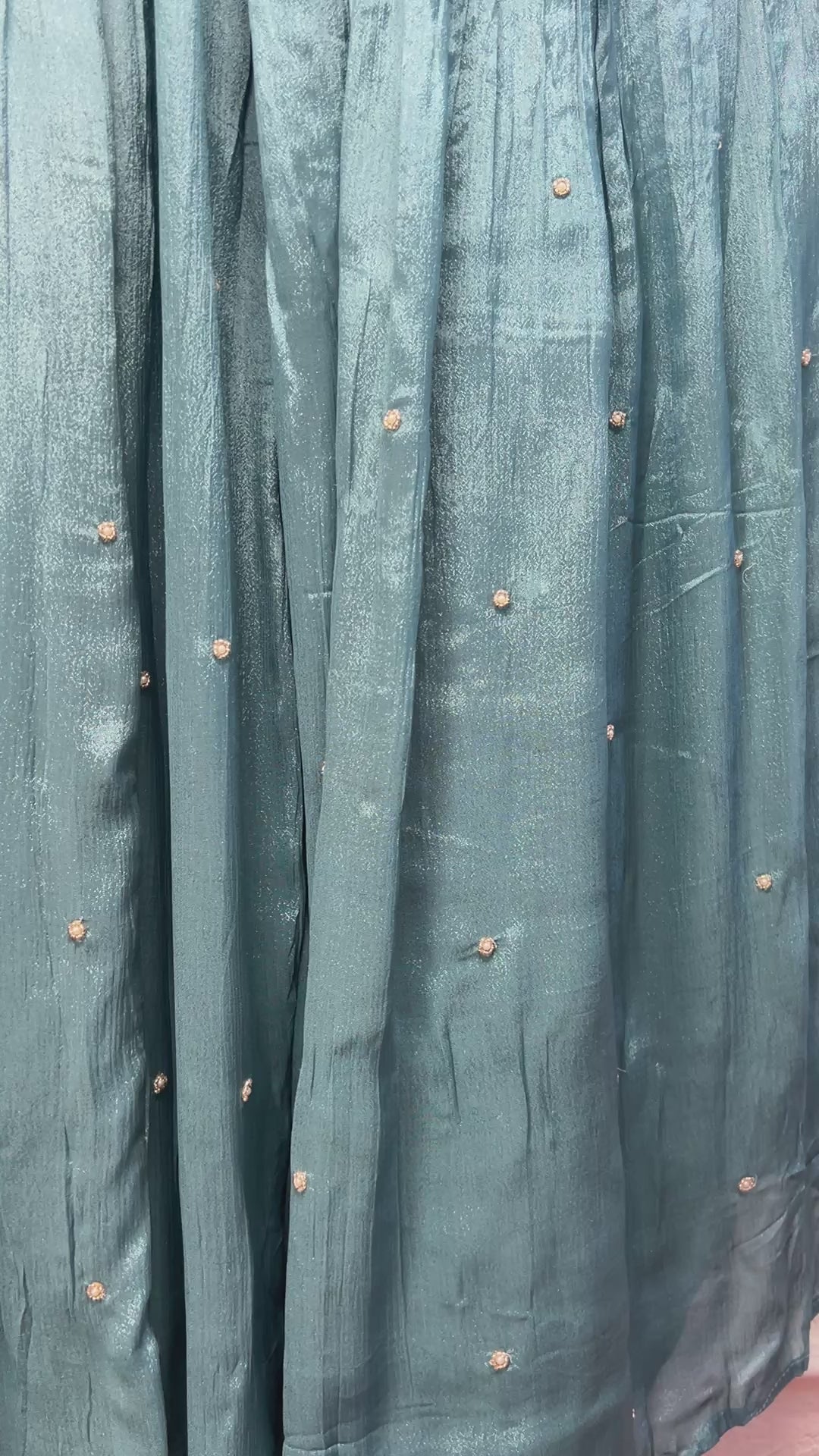 Ice blue pure shimmer tissue heavy handwork divider sharara suit partywear wedding wear