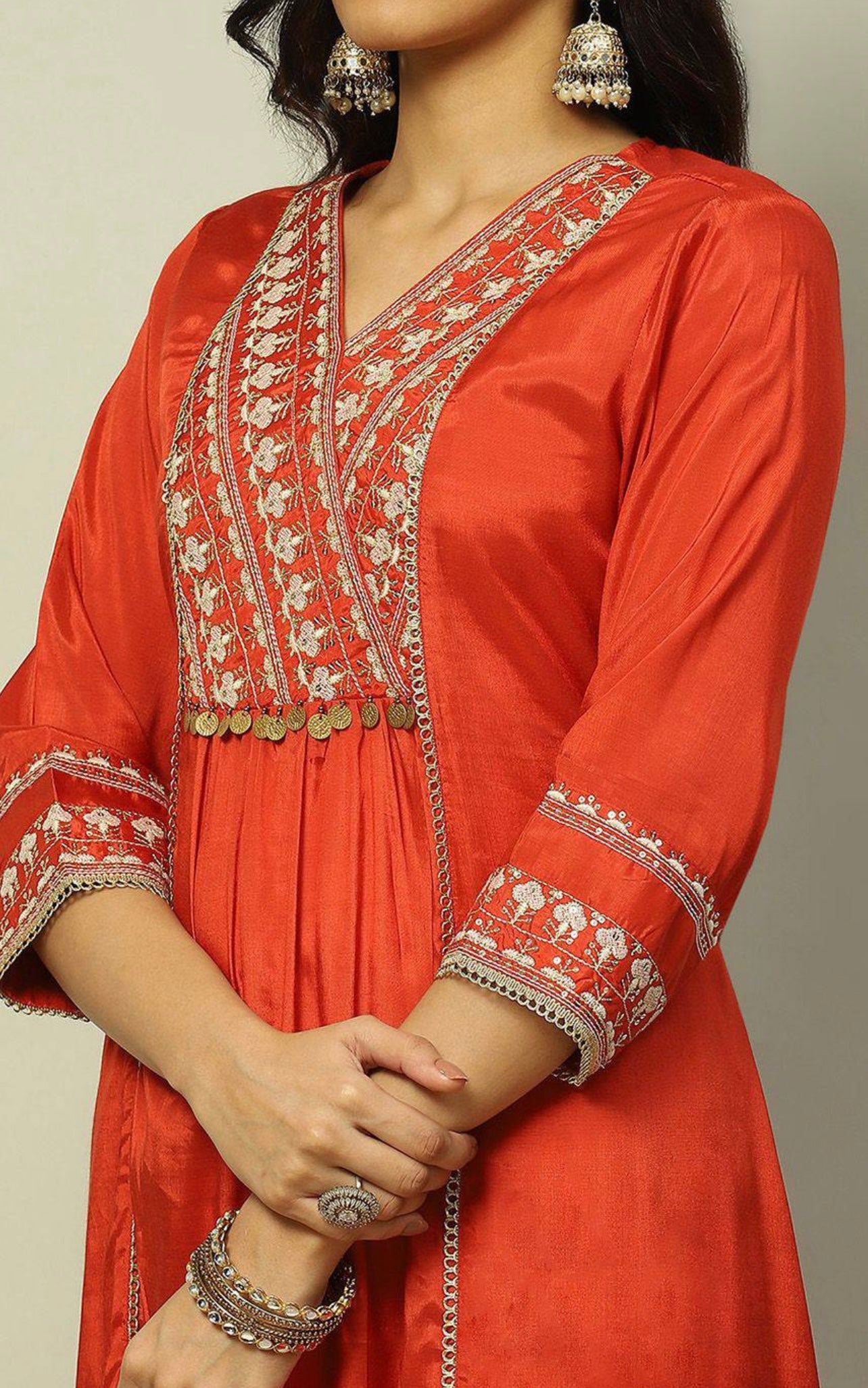 Rust orange pure viscose chanderi partywear kurti